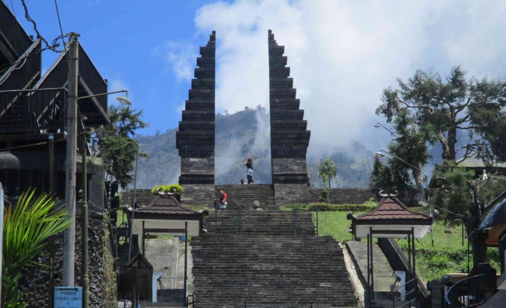 Salah satu elemen paling ikonik di Candi Cetho adalah gapura berundak yang menjadi frame alami untuk foto atau video. Dari sudut tertentu, gapura ini seperti pintu yang mengarah ke awan, terutama saat kabut mulai turun dari lereng Lawu.