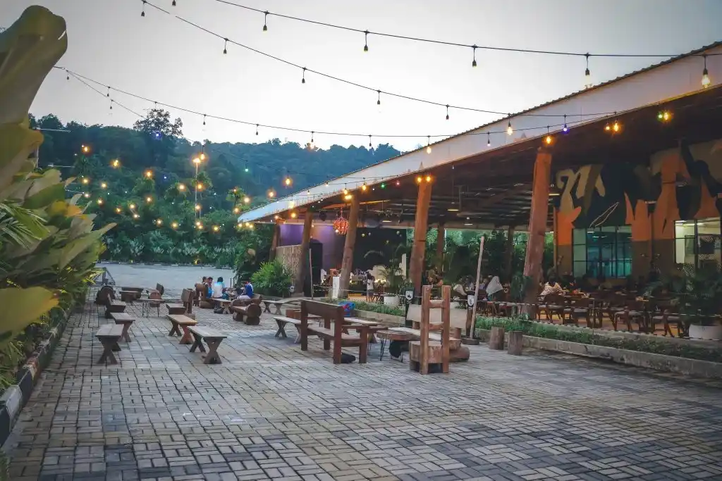 Setelah puas berkeliling dan berpetualang, Anda bisa bersantai di area kafe atau food court yang bernuansa alam. Kafe ini terletak di area Atrium, masih di dalam kompleks Panbil Nature Reserve, dengan desain semi terbuka yang memungkinkan pengunjung tetap merasakan hembusan angin alami.