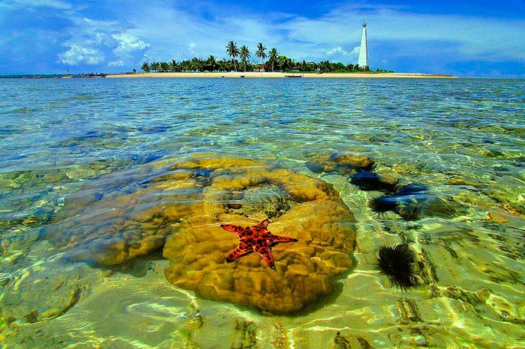 Salah satu ikon visual yang langsung menarik perhatian adalah mercusuar yang berdiri di salah satu ujung pulau. Bangunan tinggi dengan warna mencolok ini sering menjadi latar foto. Dari sudut tertentu, kamu bisa mengambil frame di mana mercusuar, pasir, dan laut bertemu dalam satu garis pandang.