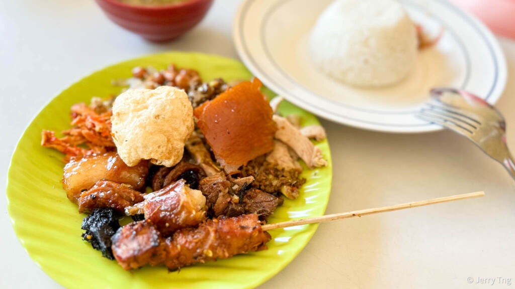 Dikenal dengan pelengkap lengkap seperti sate babi, urap sayur, serta sambal embe.